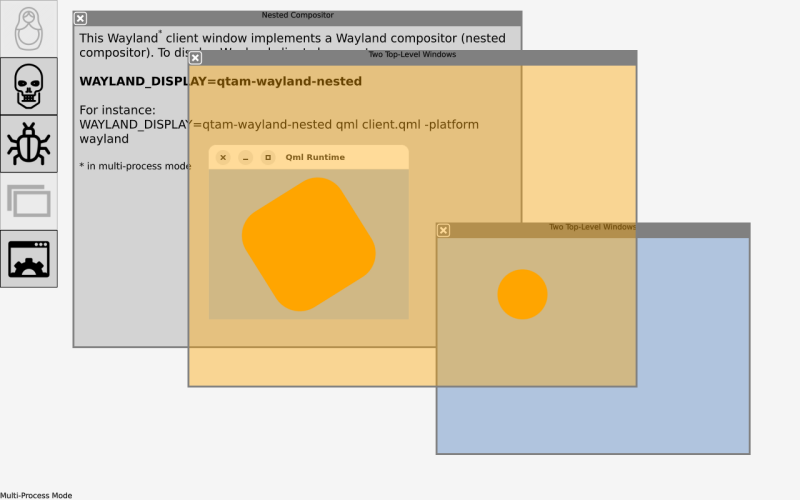 WAYLAND_DISPLAY=qtam-wayland-nested qml client.qml -platform waylandThis command only works in multi-process mode, since the nested compositor needs a real window as its root element.
