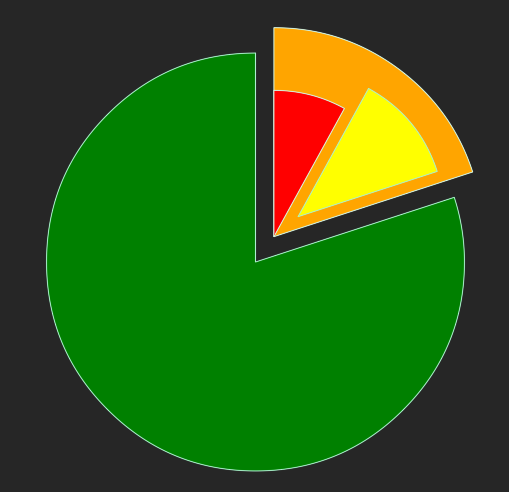By default, the label is hidden. If it is visible, it can be either located outside the slice and connected to it with an arm or centered inside the slice either horizontally or in parallel with the tangential or normal of the slice's arc.