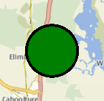 The following snippet shows a map containing a MapCircle, centered at the coordinate (-27, 153) with a radius of 5km. The circle is filled in green, with a 3 pixel black border.