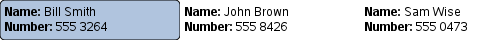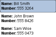 Rectangle { width: 180; height: 200 Component { id: contactDelegate Item { id: myItem required property string name required property string number width: 180; height: 40 Column { Text { text: '<b>Name:</b> ' + myItem.name } Text { text: '<b>Number:</b> ' + myItem.number } } } } ListView { anchors.fill: parent model: ContactModel {} delegate: contactDelegate highlight: Rectangle { color: "lightsteelblue"; radius: 5 } focus: true } }