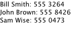 import QtQuick ListModel { ListElement { name: "Bill Smith" number: "555 3264" } ListElement { name: "John Brown" number: "555 8426" } ListElement { name: "Sam Wise" number: "555 0473" } }