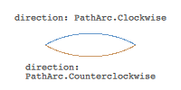 Defines the direction of the arc. Possible values are PathArc.Clockwise (default) and PathArc.Counterclockwise.