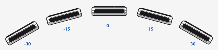 The 0 point for the x and y angles are defined as when the x and y axes of the device are oriented towards the horizon. Here is an example of how the x value will change with device movement.