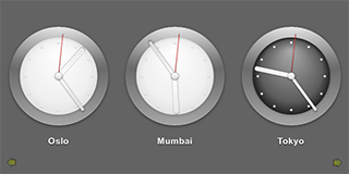 We use an Image type to display arrows that indicate whether users can flick the view to see more clocks on the left or right: