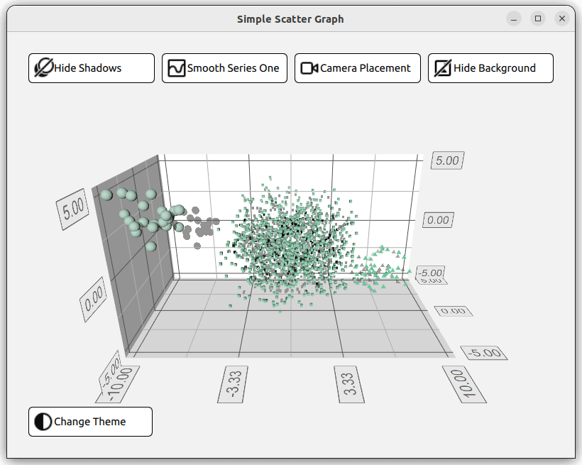 Simple Scatter Graph shows how to make a simple scatter graph visualization using Scatter3D and QML.