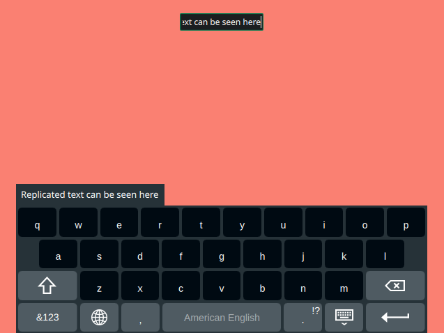 In fullscreen mode, the virtual keyboard replicates the contents of the focused input field to the fullscreen input field located at the top of the keyboard.