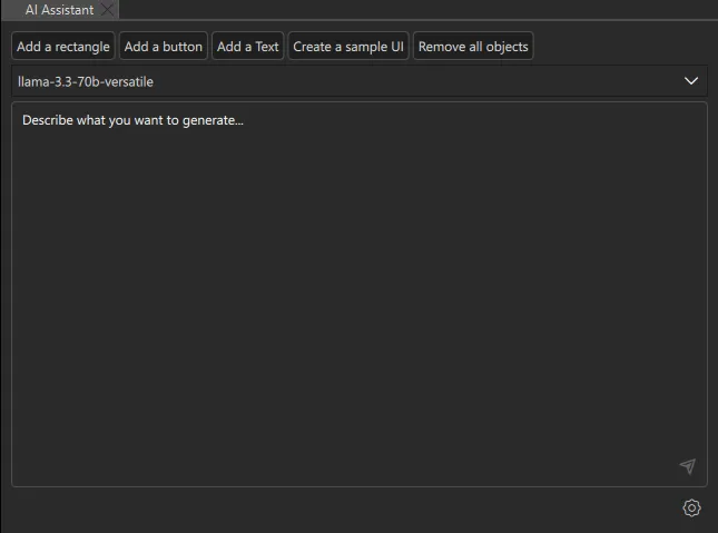 3D Assets AI Assistant view The AI Assistant view lets you use a LLM to protoype user interfaces. See also AI assistant. 3D Assets Available under certain Qt licenses.Find out more.