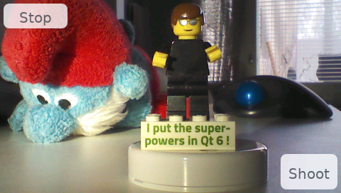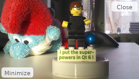 The camera interface is a simple Qul::Singleton interface with Qul::EventQueue. The event queue is used to deliver camera frames asynchronously from platform to the Qt Quick Ultralite application.