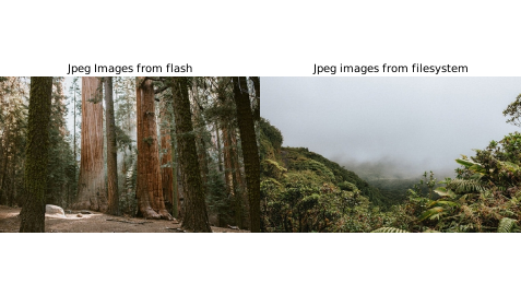 Column { Text { anchors.horizontalCenter: parent.horizontalCenter font.pixelSize: 12 text: " Jpeg Images from flash" } Image { width: 240 height: 144 fillMode: Image.PreserveAspectFit //Below images are stored as assets in flash memory source: leftImageToggle? "grand-canyon-arizona.jpg" : "sequoia-national-park.jpg" } } Column { Text { anchors.horizontalCenter: parent.horizontalCenter font.pixelSize: 12 text: "Jpeg images from filesystem" } Image { width: 240 height: 144 fillMode: Image.PreserveAspectFit //Below images must be present on SD Card root folder for embedded platforms. source: rightImageToggle?"file://basse-terre-guadeloupe.jpg" : "file://yosemite-national-park.jpg" } }