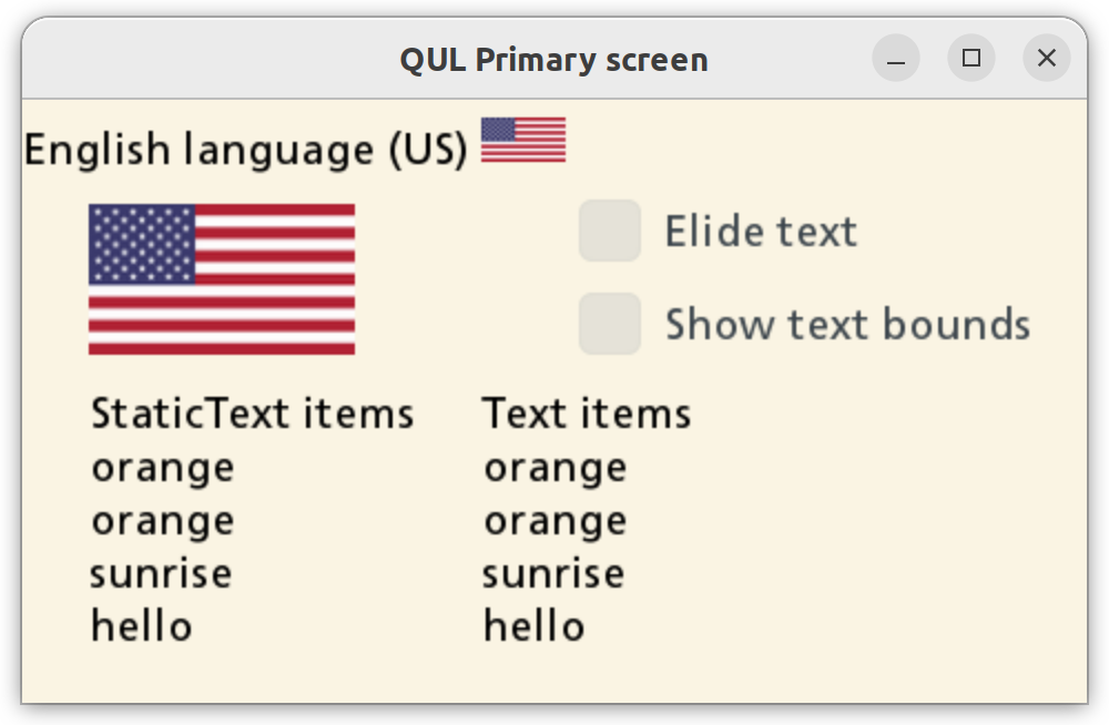 • Elide text - Elides text in the Text item only. The StaticText item is not affected by this option as eliding text is not supported on it.