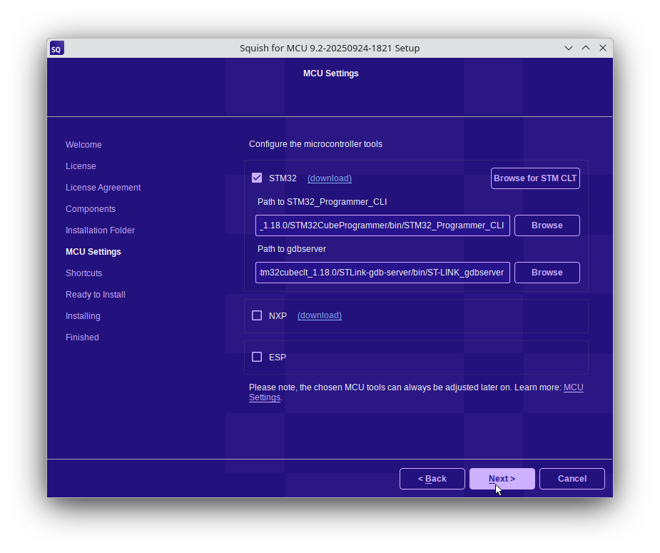 Updating MCU tools (Squish for MCU) and drivers with Squish Runner